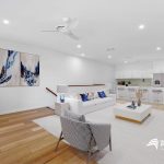 – The top floor welcomes you with a bright and airy open-plan area, filled with natural light. The kitchen is complete with stone bench tops and high-quality appliances